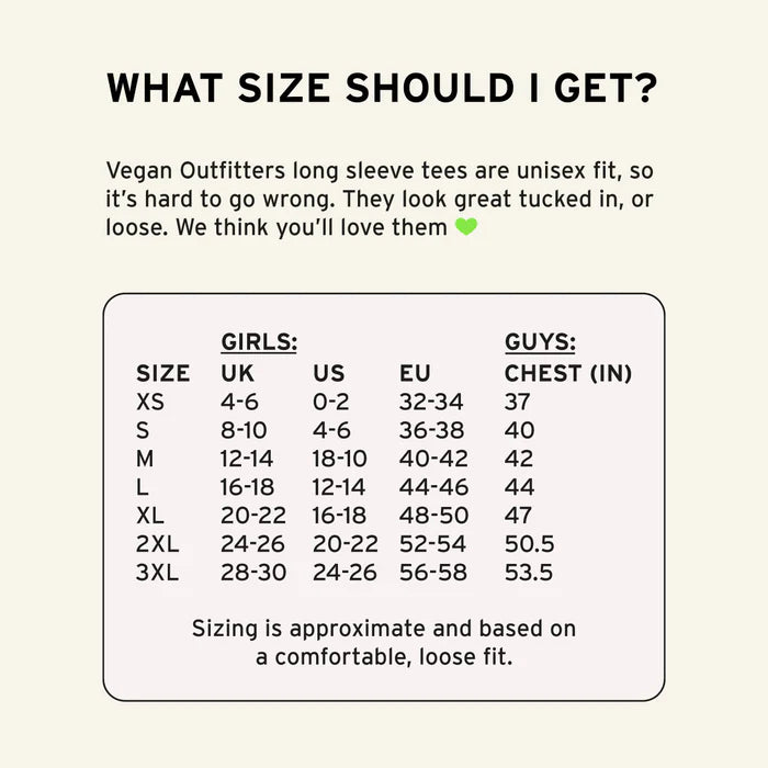 Our premium vegan long sleeve t-shirts are ethically manufactured and then embroidered to order, just for you.