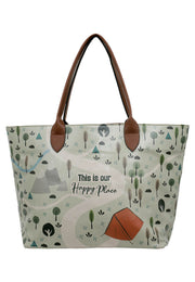 Every bag tells a story. This Is Our Happy Place Design is the product of a unique story. While the Weekender model Vegan Women's Green Shoulder Bag gives you the comfort and energy you are looking for, you continue on your way.